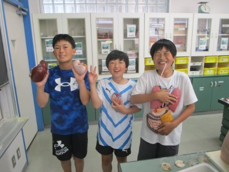 6年生 理科 動物のからだのはたらき 公開日 2025/06/02 更新日 2025/06/02 6年生 理科の学習が新しい単元に入りました。これから消化や呼吸の仕組みについて勉強します。今日は、理科室にある人体模型に興味津々でした。これからも実験を通して学びを深めていきます。