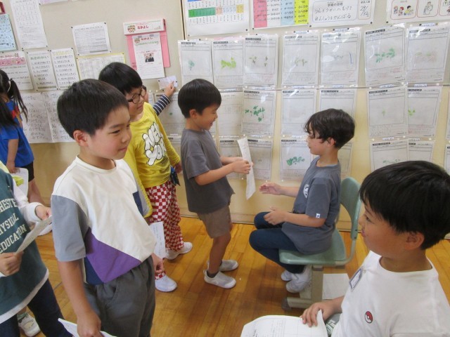 先生と仲良くなるために、名刺を渡したり、握手をしたりといろんな活動を行います。初めてお話をする先生もいるので、練習を繰り返しています。緊張しながらもしっかりと伝えられるようになってほしいです。
