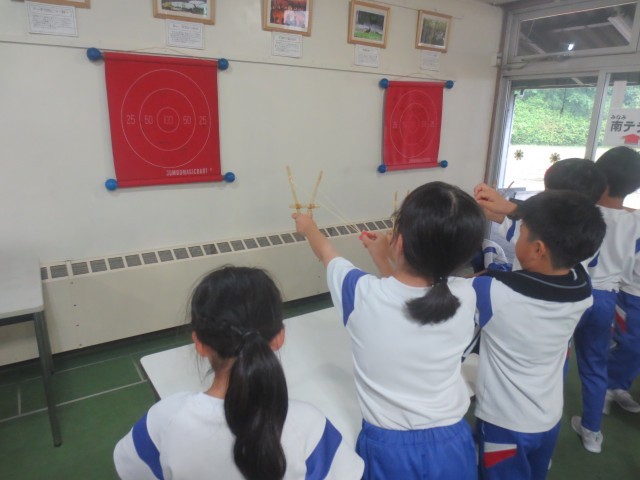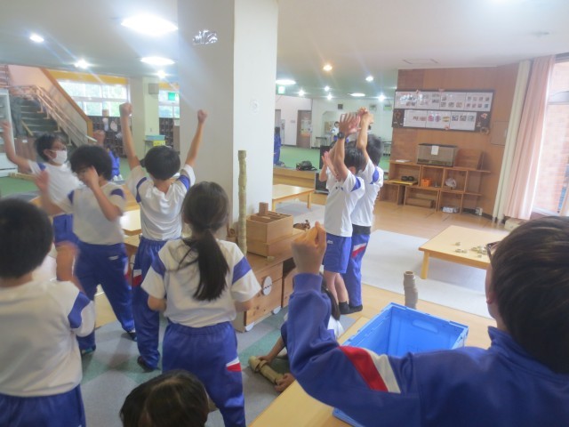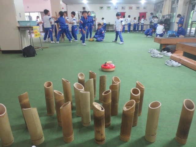 竹でできたものを使用して、ボウリングをしたり、上にたくさん積み重ねたりして遊びました。