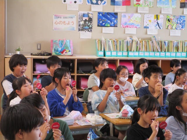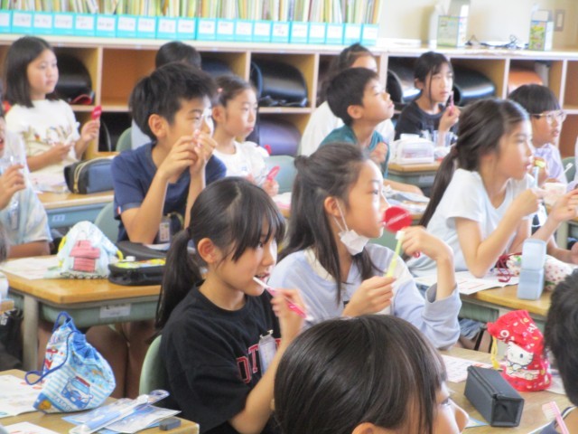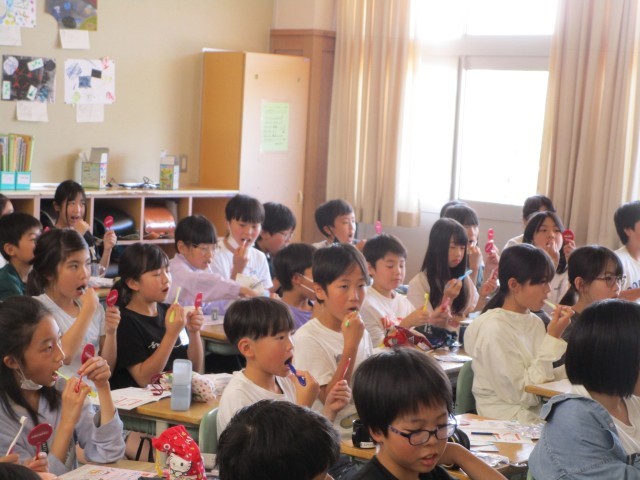 養護の先生より、きれいな歯みがきの仕方やデンタルフロスの使い方について教えてもらいました。