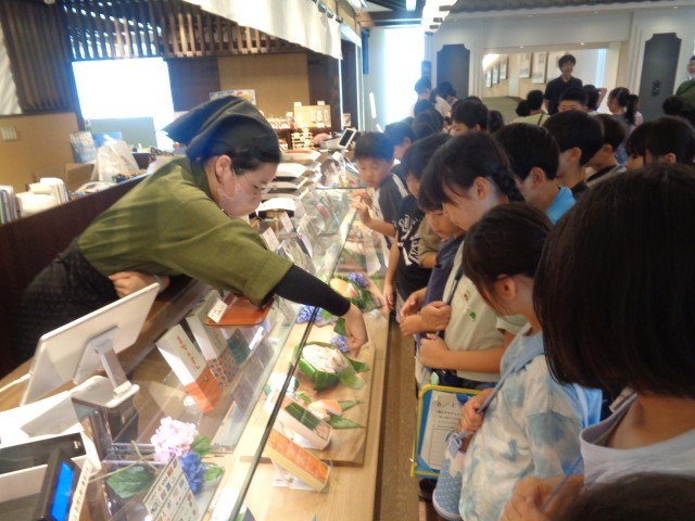 ますのすしミュージアムでは、ますの寿司をつくるようになった歴史や、つくっている様子等を見学し、子供たちの質問にたくさん答えていただきました。TVの生中継にも参加し、貴重な経験もできました。