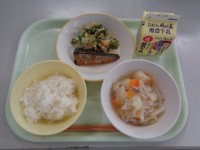 今日は、さばの塩焼きでした。さばは、青い背の魚で、血液をさらさらにして病気を防いだり、記憶力や学習能力の向上に役立つ栄養が含まれています。脳の栄養をチャージして、午後からの勉強も頑張れそうですね。今日もおいしくいただきました。