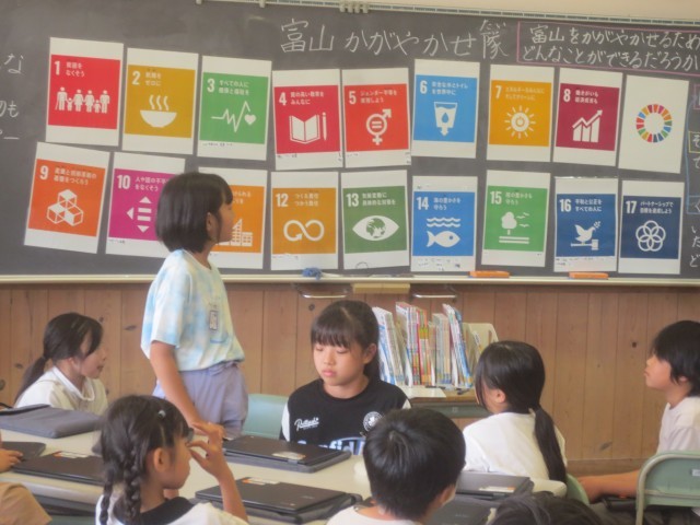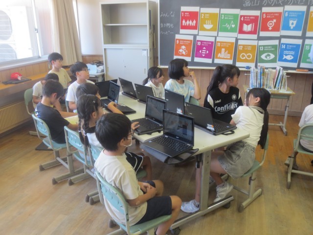 杉原の地域をよりよくするために自分にできることを考えています。「自分だけじゃなくて、世界中のみんなが問題に気付いて行動すればよい」「ゴミを減らすためにポスターをつくろう。どこに設置すればよいかな」などと、自分たちの考えを話していました。