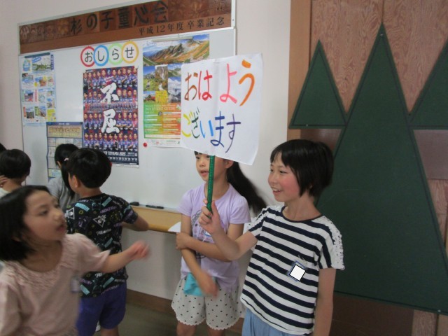 学級目標に近付くために、「挨拶をたくさんしよう」と取り組んでいます。