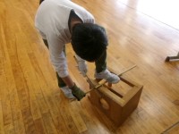 富山市スポーツ協会のスポーツ指導員の方から、跳び箱の開脚跳びや台上前転の仕方を...