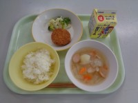 12月12日(金)今日の献立・ごはん・牛乳・メンチカツ・花野菜サラダ・ポテトスー...