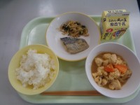 3月4日(水)今日の献立・ごはん・牛乳・いわしの土佐煮・甘酢和え・ごま豆乳鍋 今...