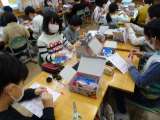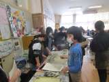 図工では、木版版画を行いました。線の太さに気を付けながら、1カ所ずつ丁寧に、彫...