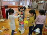集めた空き箱を積んだり並べたりして、それぞれの思いに合わせてつくりました。高く...