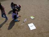 日なたと日かげの地面の温度を測りました 温度の違いに驚いていました。