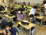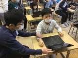 PCで学校のHPを見たり、先生が事前に作成した問題に挑戦したりする1年生の活動を...