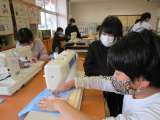 家庭科でミシンを使っています。上糸かけや直線縫いなどに、子供たちはわくわくどきど...