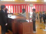 卒業式を月曜日に控え、今日は5年生が卒業式の式場や控え室等の準備を行いました。...