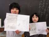 教室に戻って、今度は校長先生に作っていただいた、自分の写真の分身を使って「かく...