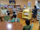 本を返す方法を教えてもらい、読み聞かせを楽しみました。 司書の先生が作業しや...