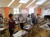 授業のはじめに音楽に合わせてダンスをしています。体を動かすことで楽しく学習に励...