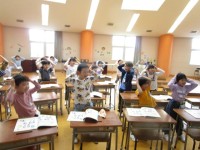 1・2年生は、一緒に校歌を歌った後、学校探検をしながら2年生のつくったクイズを...
