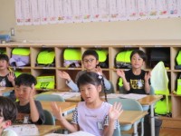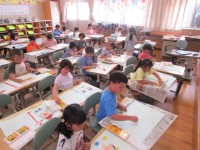 先日行われた運動会のがんばった場面を絵に描きました。玉入れの様子を描く子供が多...