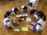 音楽室で静かに耳を澄ませていると、聞こえてくる、いろいろな音を、声で表す活動を...