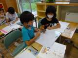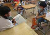 土日にあった出来事を、ペアで聞き合っています。日記と共に絵を見せたり、気になっ...