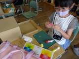 図工では、「のぞいてみると」の学習をしています。 箱の中に夢の世界を作っています...