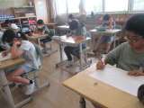 図工では、伝言板づくりをしています。 糸のこを動かしながら、自分の思う形に板を...
