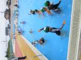 気持ちの良い晴れ間に、プールに入ることができました。 みんなでプール内を一方向に...