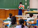 国語科の学習で、夏休みに一番頑張ったことについて発表しています。一人一人の発表...