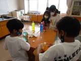 図画工作科で色水づくりをし、様々な色の変化を楽しみました。 片付けのときには...