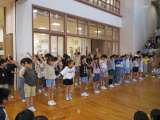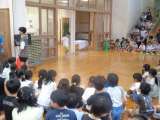 なわとびやダンスの得意芸ショーを行いました。見ている人たちは、拍手をしたり、合...