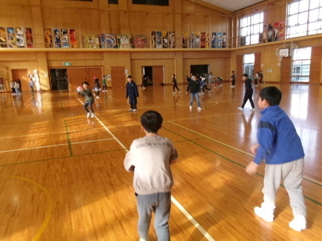 ドッジボールをして、体を動かしています。