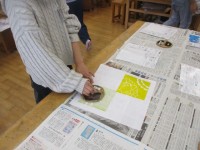 図工では、紙粘土を使った版画の学習をしています。今日は、絵の具を使って生き物の...