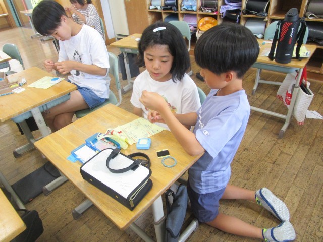 裁縫に初めて挑戦しました。友達同士で玉留めや玉結びのやり方を確認して安全に取り組むことができました。