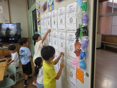 各学級では、元気全開ダイヤモンドをもとに自分の目当ての7月分の振り返りを行いました。また、夏休みに向けて先生のお話を聞いたり、1学期の学習の復習を行ったりしながら、各学級で過ごしました。