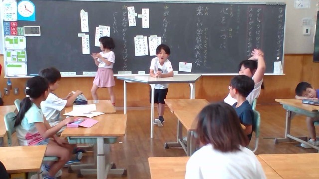 1年生は、初めての学習発表会に向けてスローガンを考えていました。司会を立てて自分たちで話合いを進めてる姿がすてきでした。
