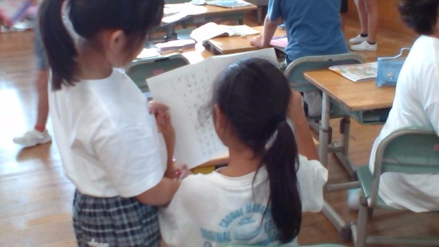 2年生は、国語の学習です。「どうぶつ園のじゅうい」の説明文の学習に入ったようです。友達と意見を交流する姿が見られました。