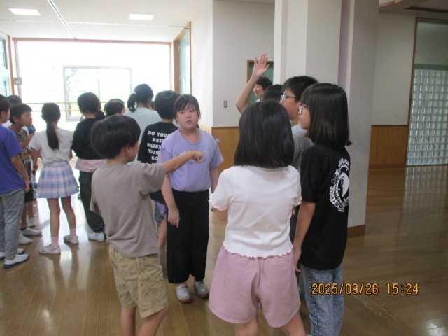ゲーム係がお題を出し、その順番を色団ごとに相談し合って並ぶゲームのようです。
