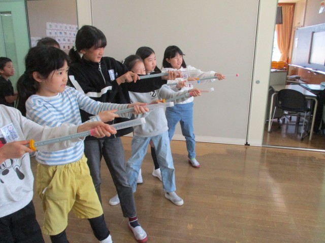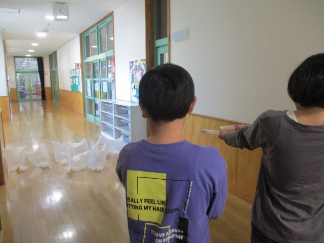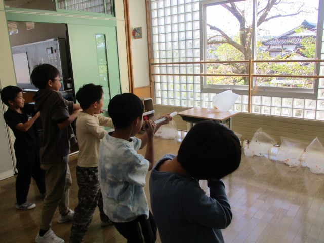 空気鉄砲で遊び、筒の中に閉じ込めた空気の様子を考えました。