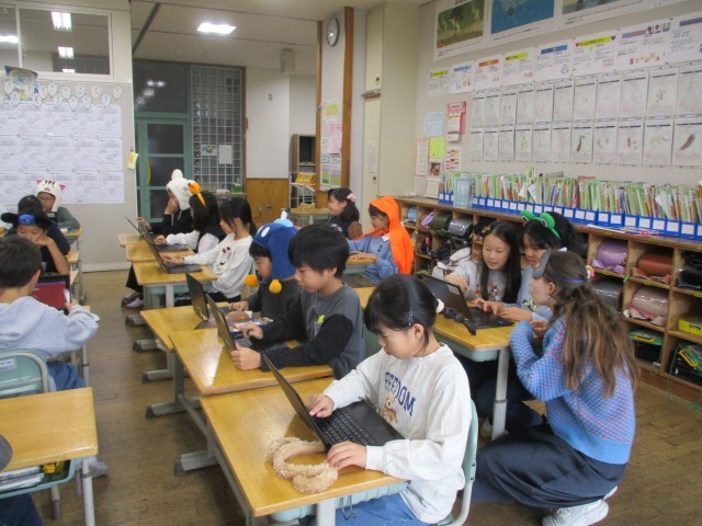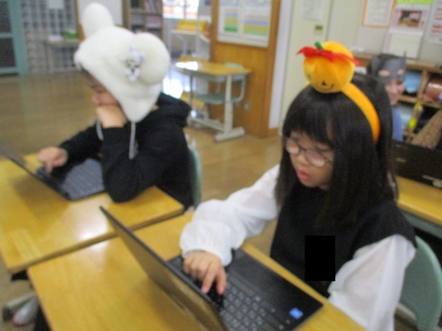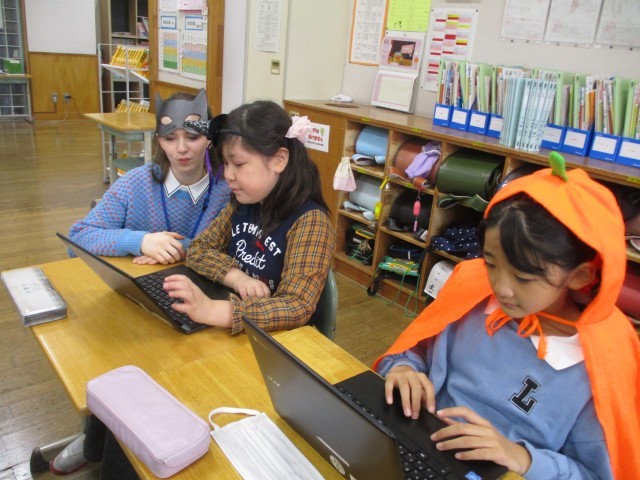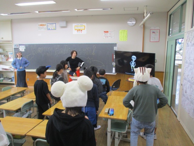 外国語活動では、ハロウィンパーティーとしてダンスやゲームを楽しみました。