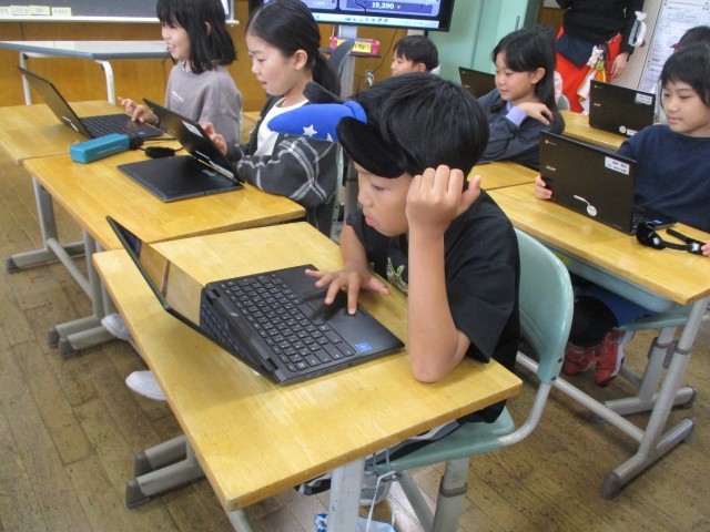 アルファベットの大文字や小文字を素早く打ちながら得点を稼いでいくゲームでは、ミスなくパーフェクトで終える子供もいました。