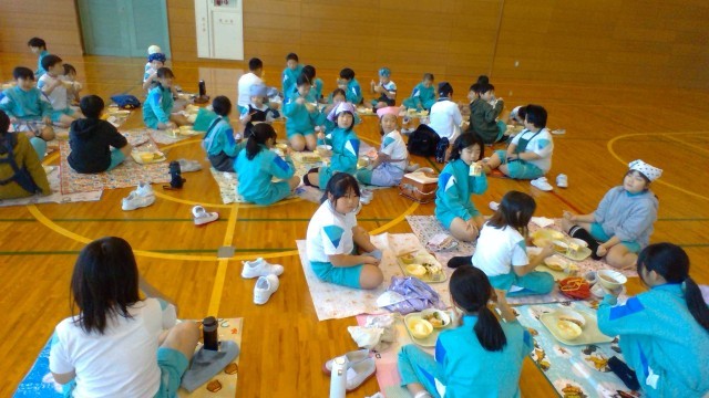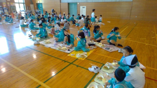 いつもと違う環境で食べる給食を楽しむ子供たちでした。