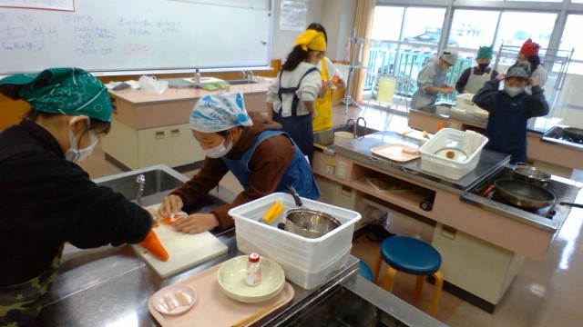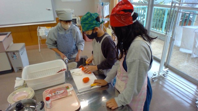 人参を切ったり、皮をむいたりすることに挑戦しました。
