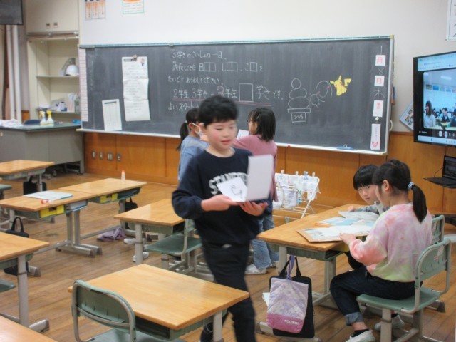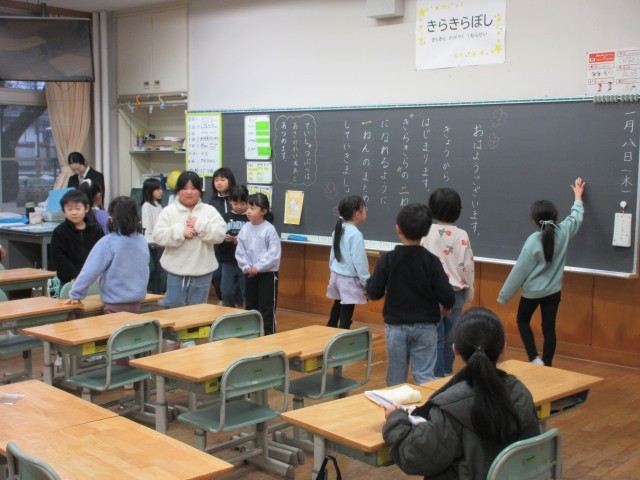 3学期初日の朝は、あいにくの雨でしたが、子供たちが元気に登校してきました。
