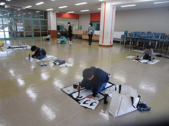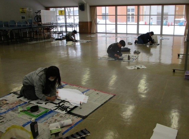 県の書初大会に出品する書初め作品を、なかよしホールで書きました。
