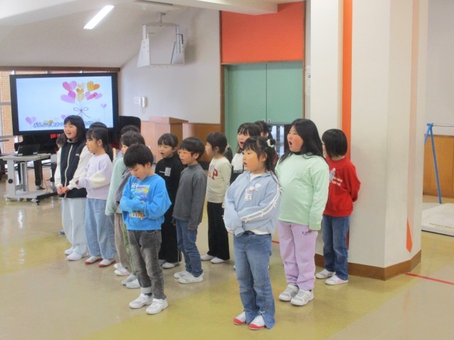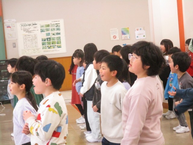 1・2年生合同の音楽で「マイバラード」を歌いました。