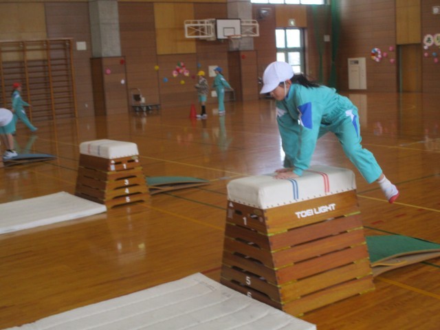 今日は、自分のレベルに合わせた跳び箱を選択し、繰り返し練習しました。