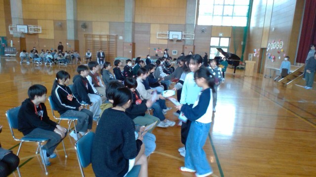 縦割り班の寄せ書きをプレゼントとして贈りました。