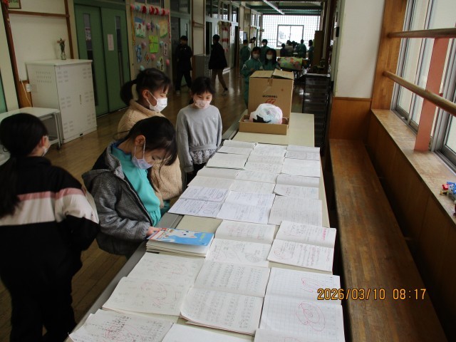 今年度最後の「自学ノート展覧会」を開催しました。他学年の工夫や努力の跡を真剣に見つめ、自分の学びに生かそうとする子供たちの姿が見られました。