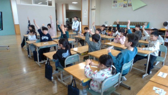 ALTの先生と一緒に、3年生から始まる外国語活動の導入を行いました。