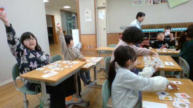 アルファベットや果物について、歌やゲームを通して楽しみながら活動しました。